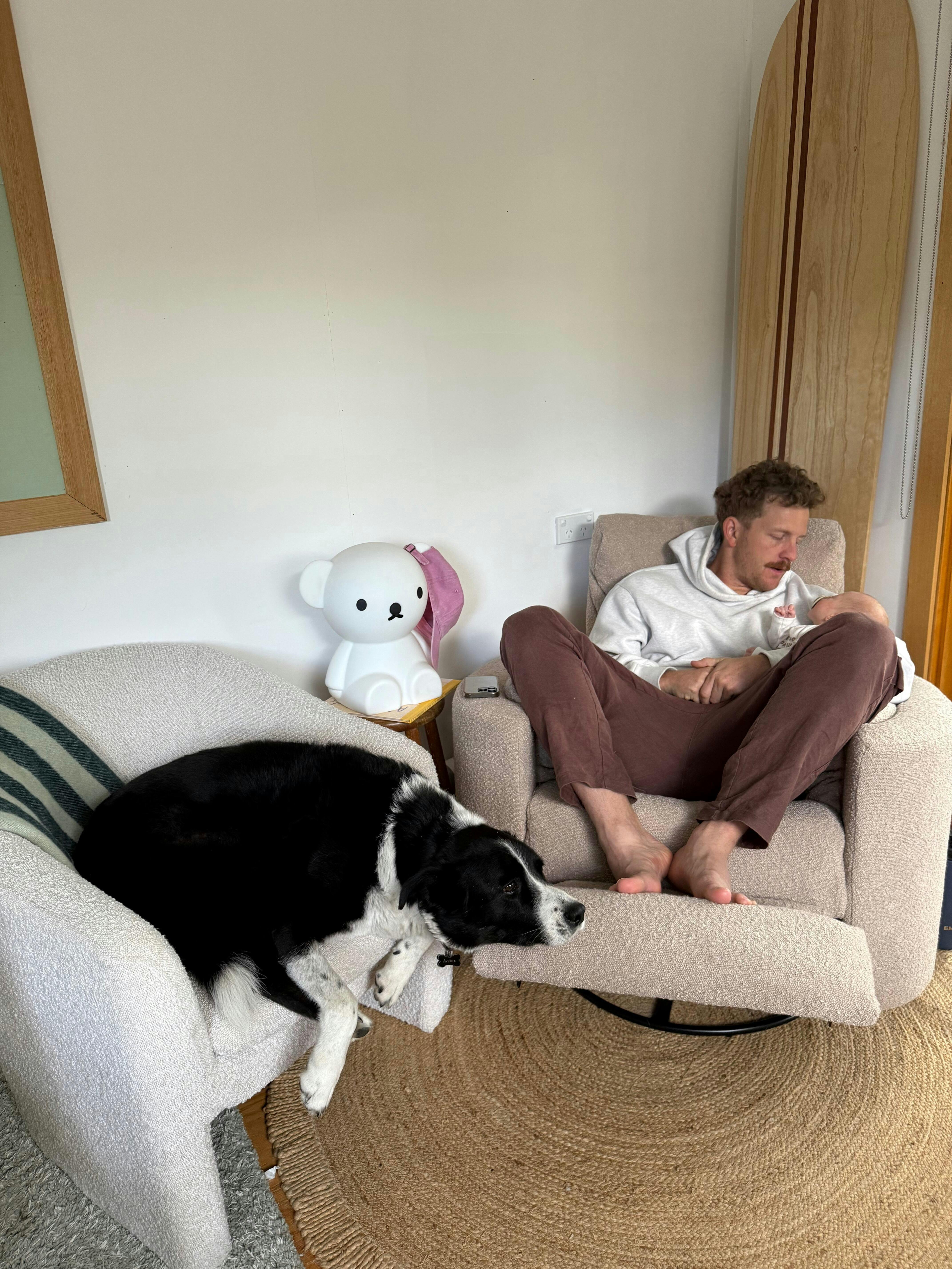 Say hello to our Fluff Mumma! Your ultimate cuddle buddy that glides (gentle rocking motion), swivels a full 360°, and reclines like a dream. The secret sauce? The handy side lever that gently reclines you into a comfortably relaxed, locked position, with the ability to push back even further to full chill mode. When you’re ready to sit up, simply use your feet to push the footrest back into place.
