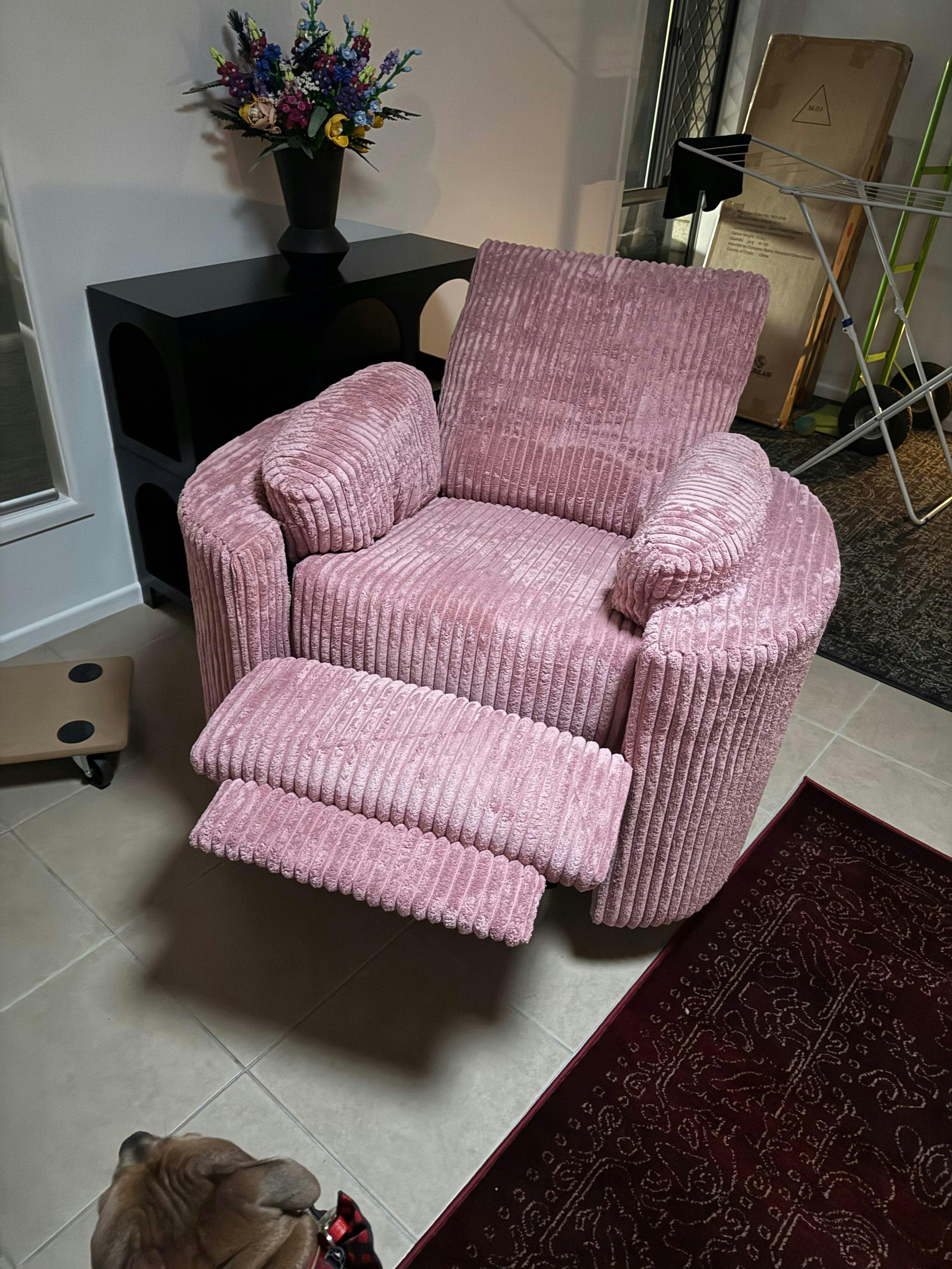 The superhero of armchairs, our Fluff Daddy is equipped with a secret weapon. Removable side cushions!!! Just in case you want to make room for two.....? Or maybe they just need a bit more tlc than the rest of the recliner.They are easy to take off, just unzip and bob’s your uncle.